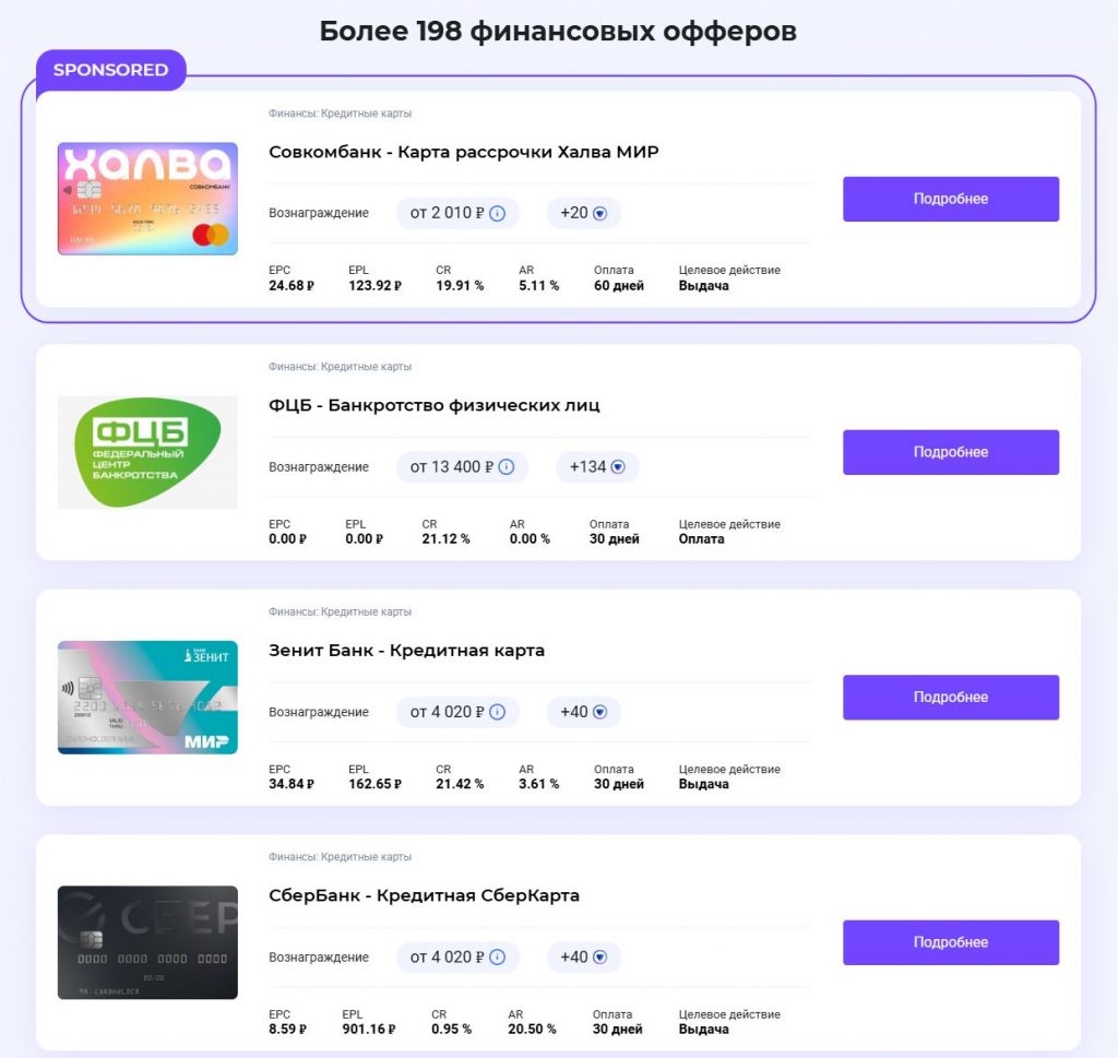 Какие банковские продукты продвигаются через CPA