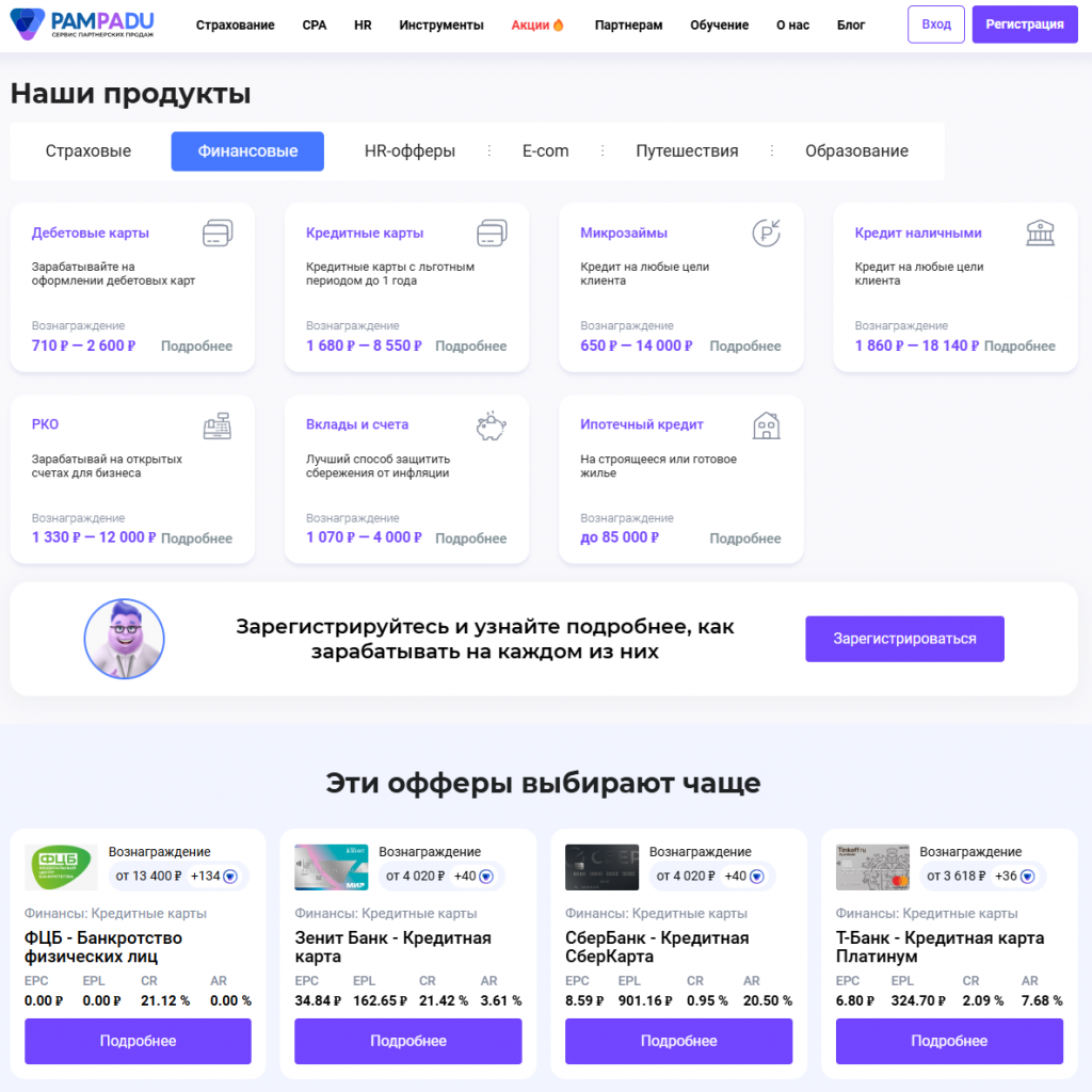 Пример офферов Pampadu