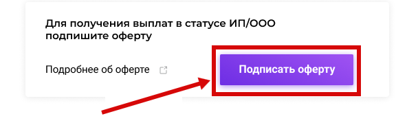 - Физ. лицам и самозанятым нужно пройти верификацию, юр. лицам подписать оферту через ЭДО или онлайн.
