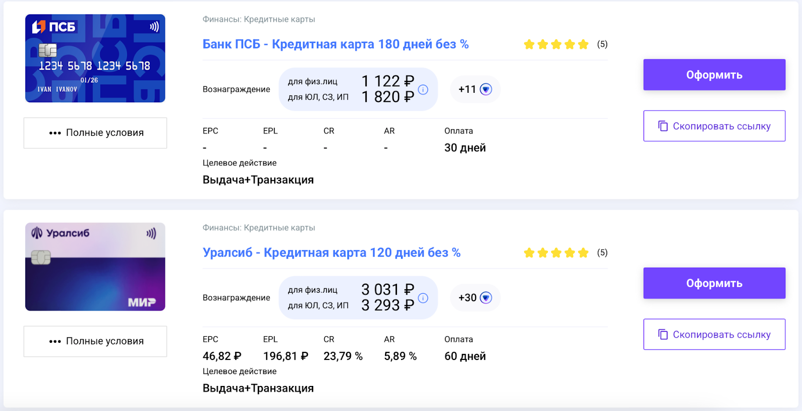 Офферы на такие кредитные карты доступны на Pampadu.